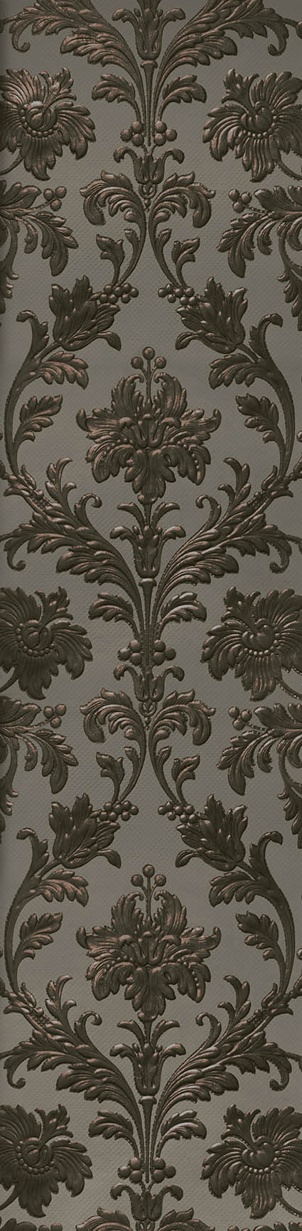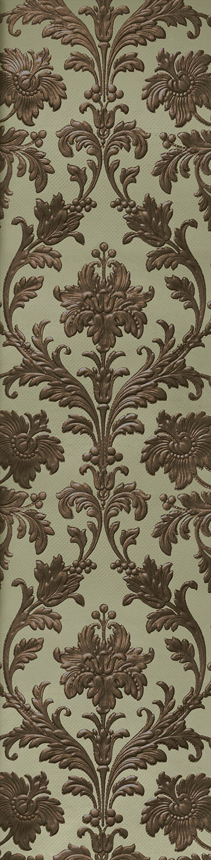 Wallpaper on silver or gold metallic background, printed and patinated by hand and embossed using antique copper plates (classified "Historical Monuments"). All these documents can be customized with the customer's colors. Sold by the meter and packaged in lengths.