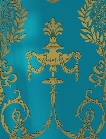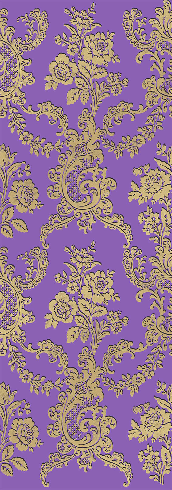 Several Empire-style wallpaper designs, printed using ancient woodblocks (classified Historical Monuments) on hand-brushed backgrounds. Sold in rolls.